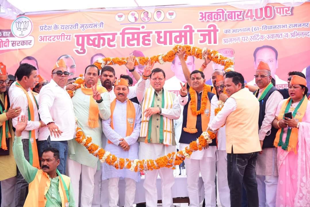 मालधन, रामनगर में मुख्यमंत्री पुष्कर सिंह धामी की जनसभा में भारी उत्साह के साथ स्थानीय नागरिकों ने प्रतिभाग किया। यह उद्घोष है देवभूमि की जनता की यशस्वी प्रधानमंत्री नरेन्द्र मोदी के नेतृत्व वाली डबल इंजन सरकार के जन कल्याणकारी कार्यों पर अपनी मुहर लगाने जा रही है।