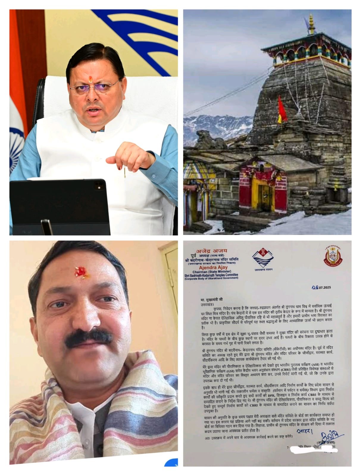 तत्काल हस्तक्षेप हो वरना धरोहर को नुकसान निश्चित’—अजेंद्र ने मुख्यमंत्री से की तुंगनाथ पर त्वरित निर्णय की मांग
