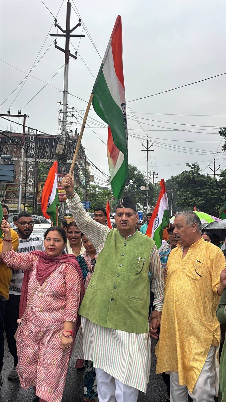 तिरंगा यात्रा में भारी बारिश के बावजूद सैकड़ों की संख्या में मातृशक्ति, पूर्व सैनिक, युवा, पार्टी पदाधिकारी और स्थानीय नागरिको ने भारत माता की जय के नारों के साथ शामिल हुए।