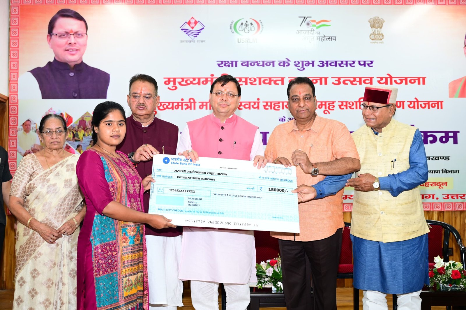 मुख्यमंत्री धामी ने रक्षाबंधन के अवसर पर मुख्यमंत्री आवास में ’मुख्यमंत्री सशक्त बहना उत्सव योजना’ एवं मुख्यमंत्री महिला स्वयं सहायता समूह सशक्तिकरण योजना के अन्तर्गत राज्य स्तरीय कार्यक्रम में प्रतिभाग किया
