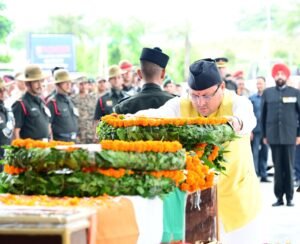 डोडा, जम्मू कश्मीर में आतंकवादियों से मुठभेड़ के दौरान शहीद हुए 48 राष्ट्रीय राइफल के कैप्टन दीपक सिंह का पार्थिव शरीर पर राज्यपाल लेफ्टिनेंट जनरल गुरमीत सिंह (से नि) एवं मुख्यमंत्री धामी ने उनके पार्थिव शरीर पर पुष्प चक्र अर्पित किए